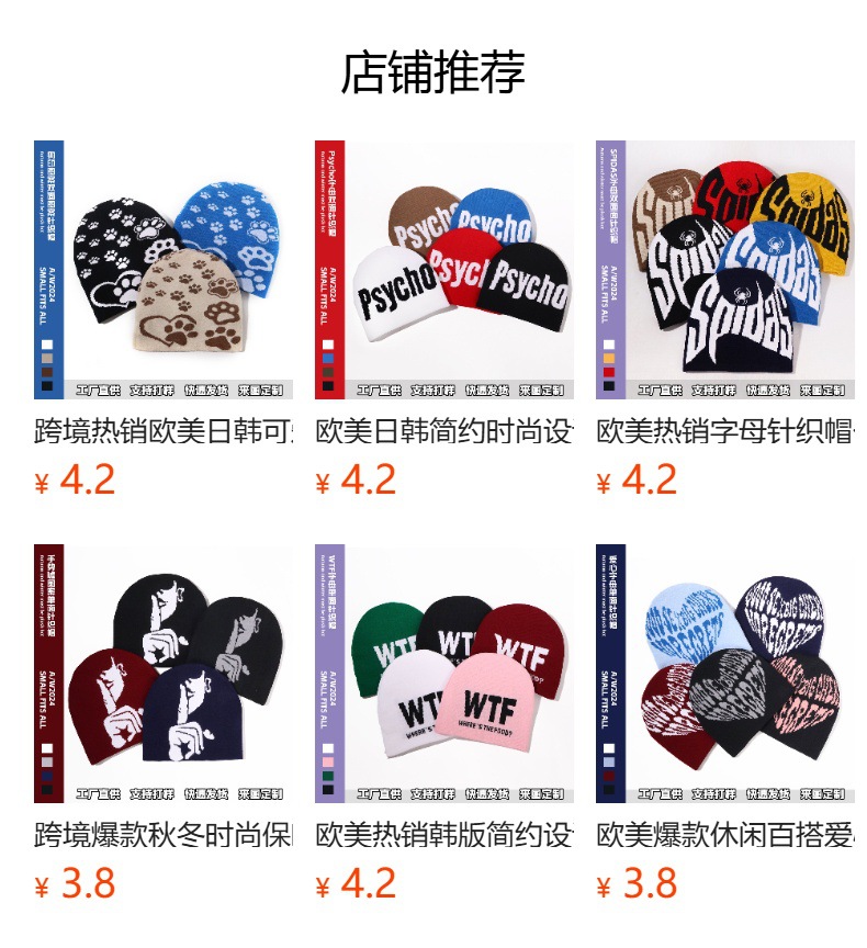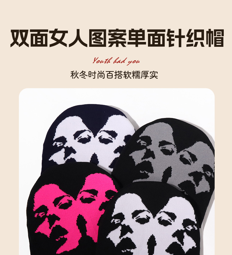 欧美日韩热销图像图案针织帽休闲百搭简约时尚秋冬保暖户外防寒