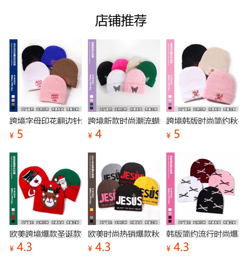 热销爆款欧美潮流百搭时尚刺绣字母翻边针织帽秋冬户外保暖防寒
