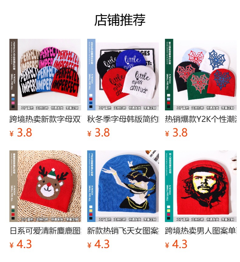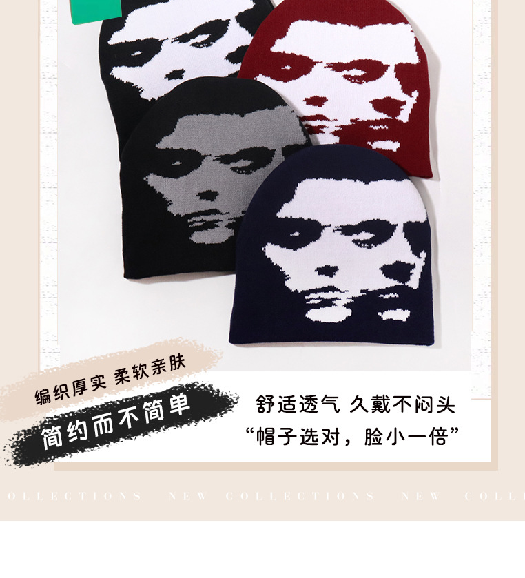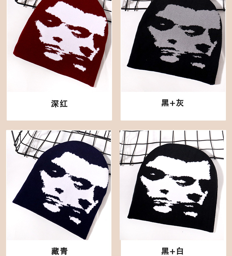 跨境热销现货女人图像单面针织帽男女提花欧美流行百搭休闲保暖帽