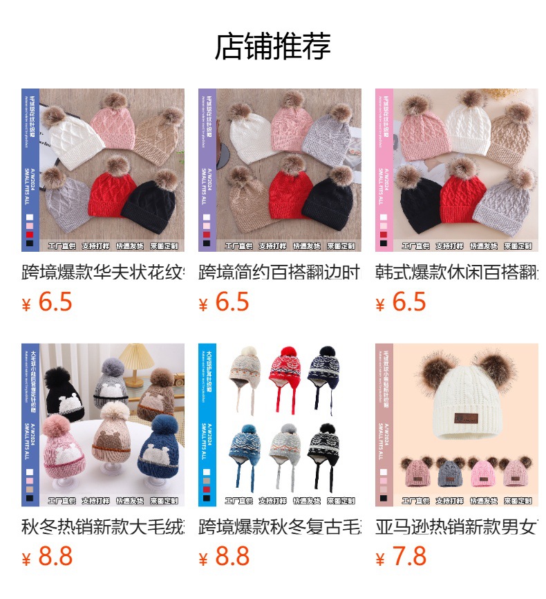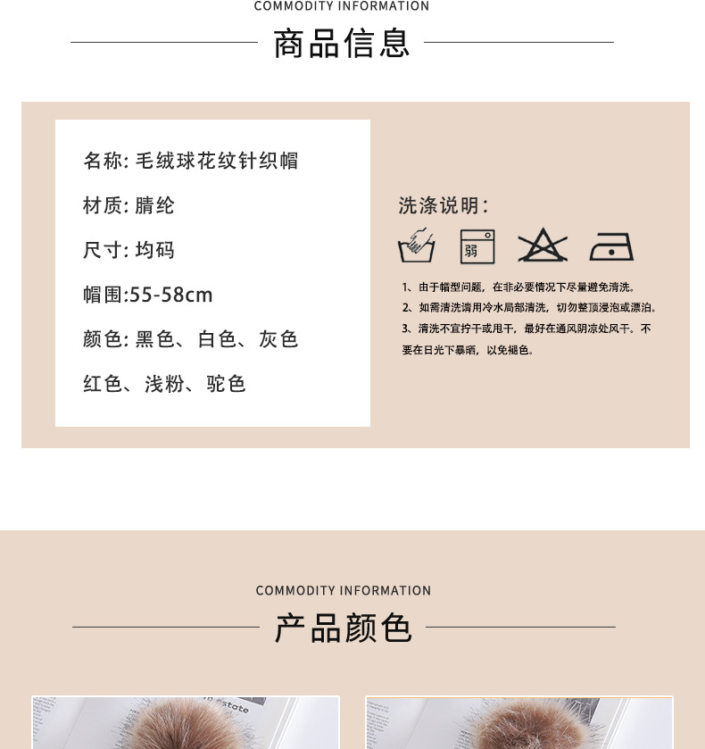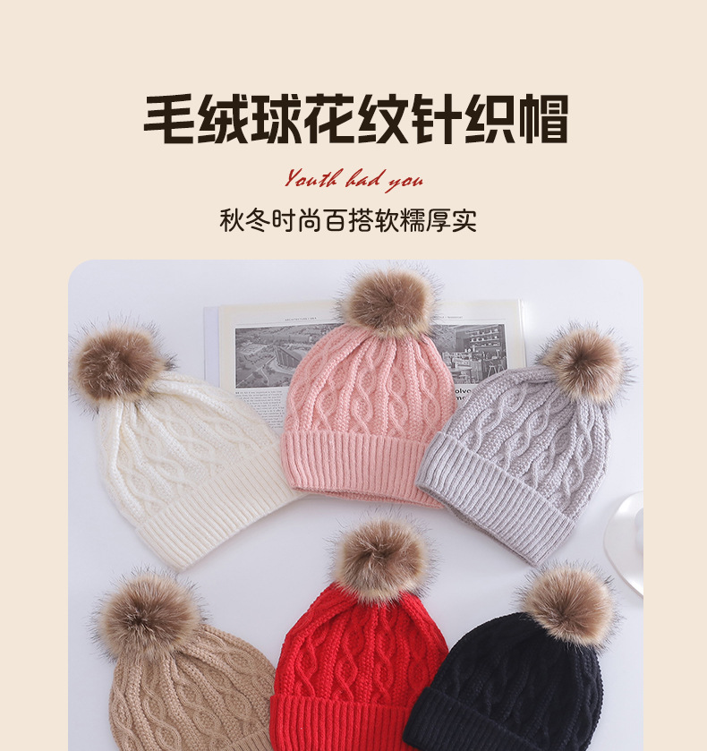 欧美热销保暖翻边大毛绒球针织帽男女同款时尚百搭休闲韩系流行