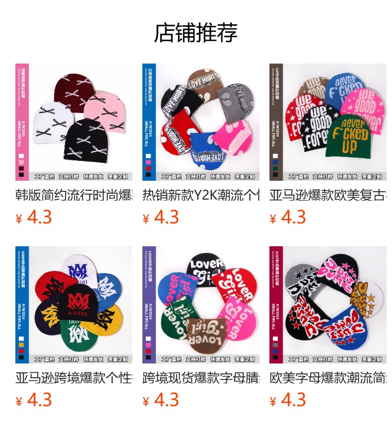 欧美跨境热销爆款字母韩版时尚简约流行ins百搭提花针织帽保暖