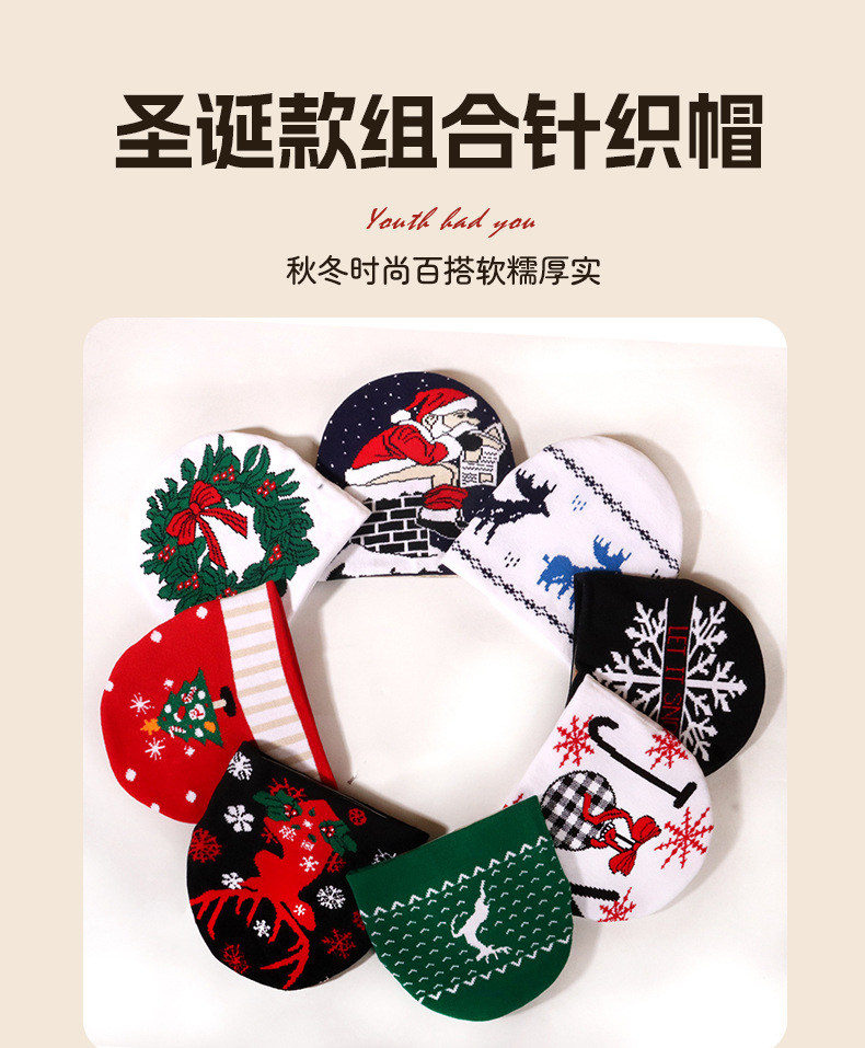 欧美日韩跨境爆款时尚保暖秋冬圣诞节圣诞派对针织帽潮流防寒冷帽