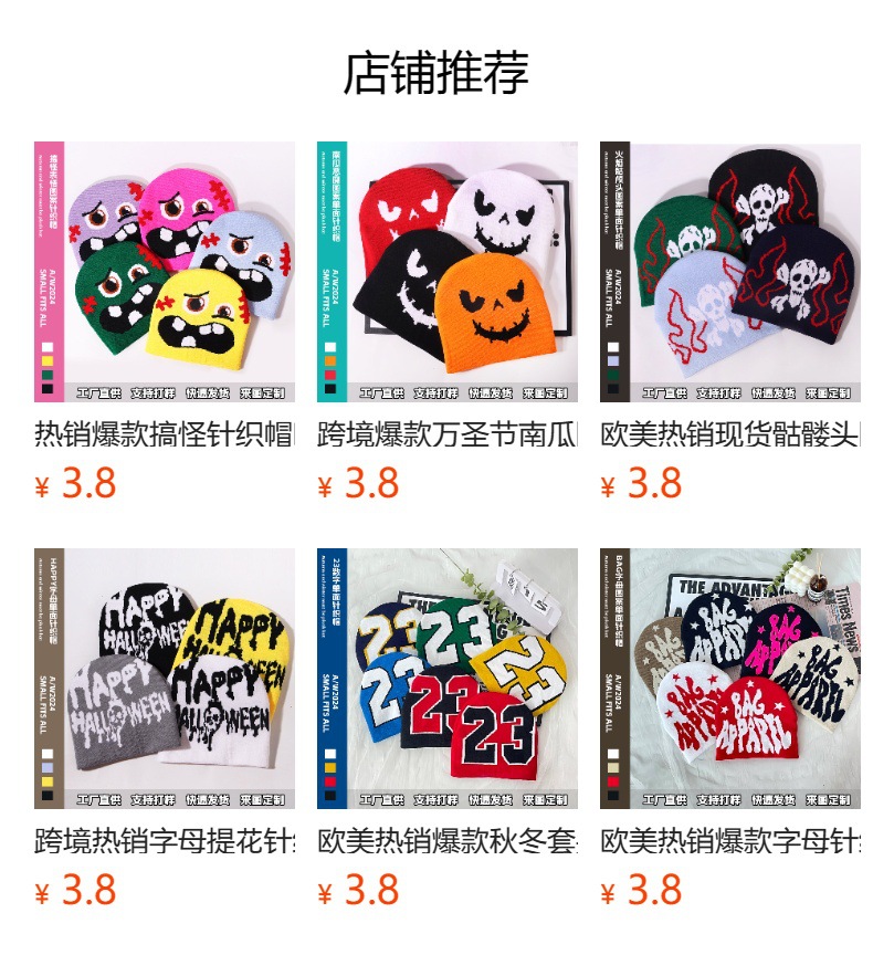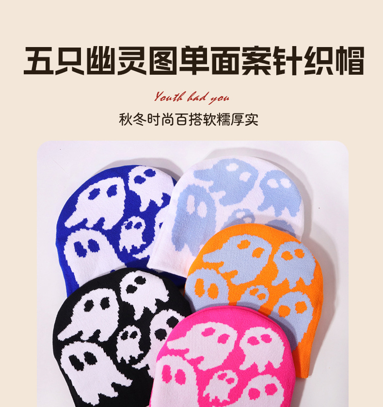 秋冬街头潮流幽灵图案针织帽欧美流行嘻哈帽户外运动万圣节礼物