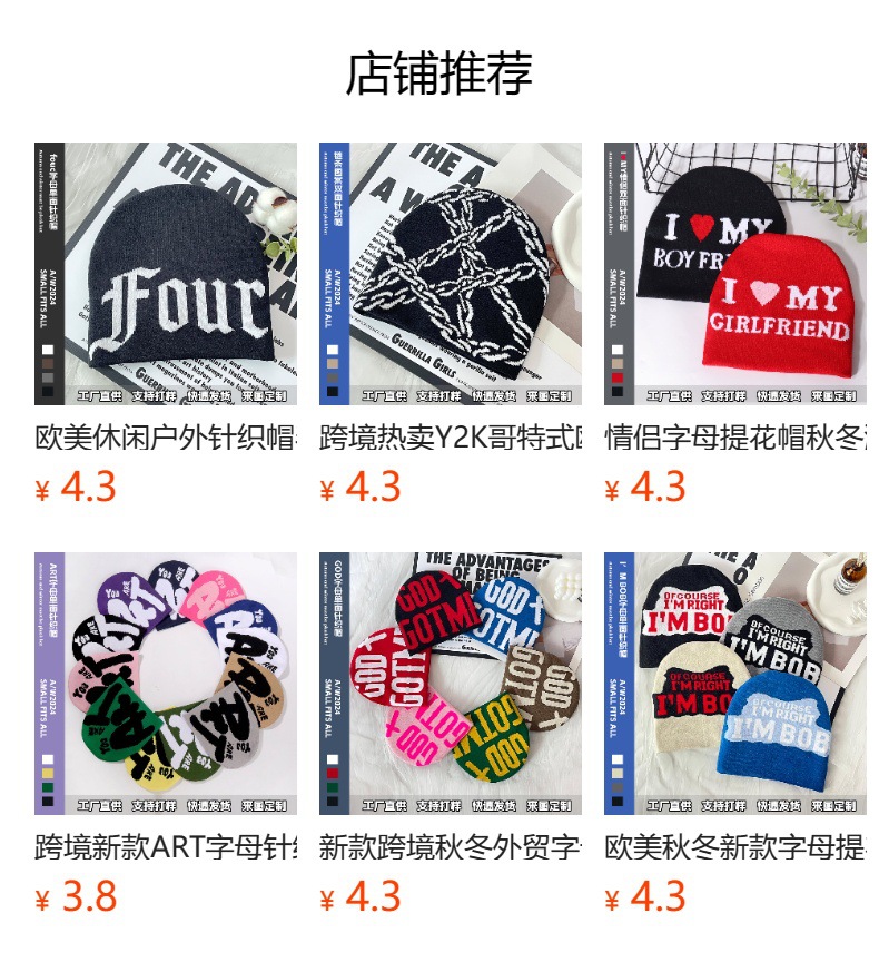 韩版百搭字母针织帽秋冬户外防寒保暖亚马逊热卖新款休闲个性冷帽