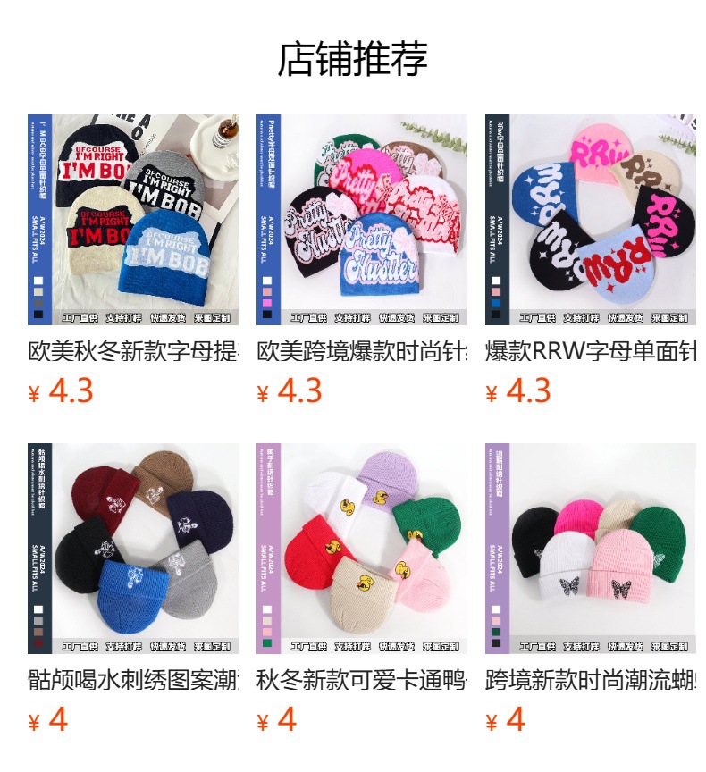 新款跨境秋冬外贸字母提花针织帽多色男女欧美潮流韩版成人防寒帽