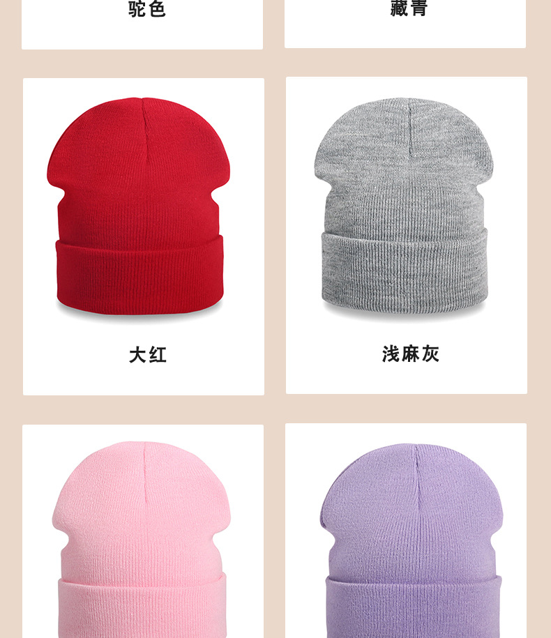 亚马逊跨境韩版纯色翻边光板针织帽保暖防寒简约休闲百搭毛线帽