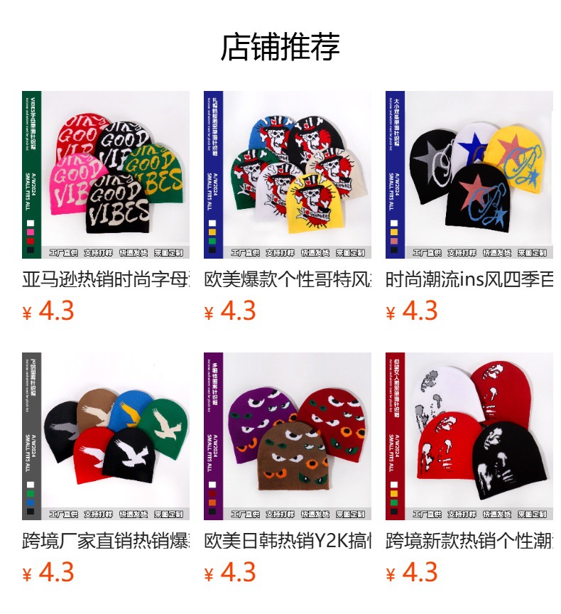 欧美秋冬字母提花图案针织帽男女同款休闲时尚百搭爆款保暖冷帽