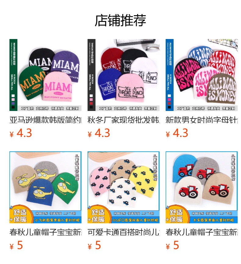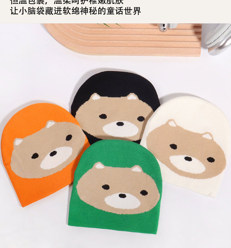 儿童帽子日系休闲可爱卡通小熊图案时尚百搭男女童现货保暖针织帽