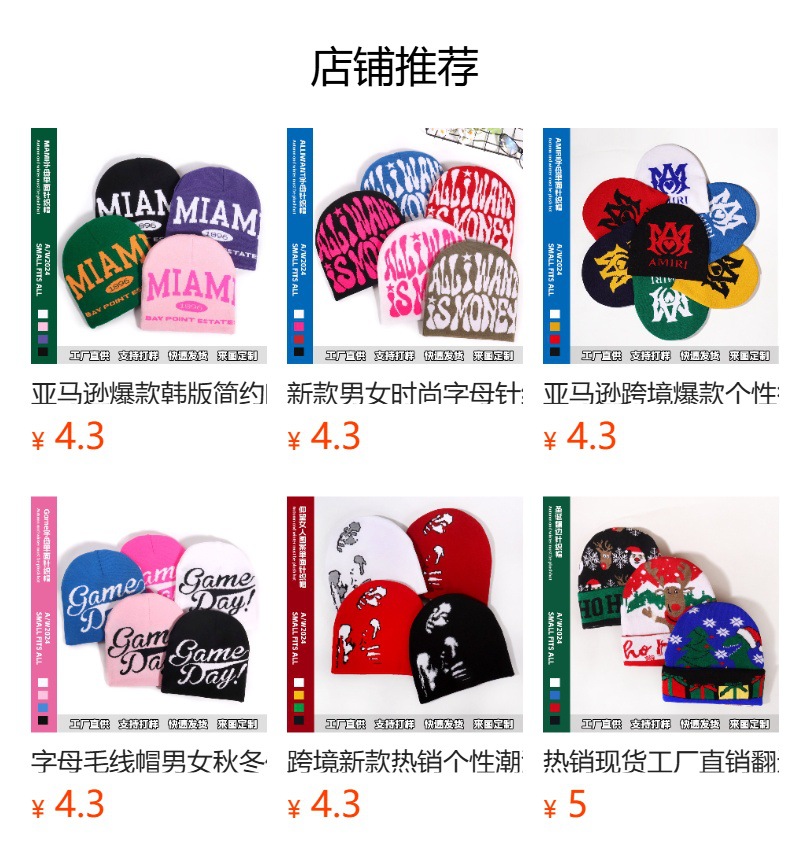 亚马逊跨境爆款休闲时尚字母针织帽现货男女同款户外保暖流行冷帽