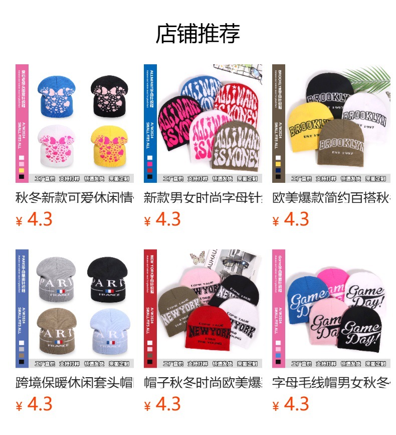 亚马逊爆款韩版简约时尚男女百搭休闲字母提花保暖针织帽户外防寒