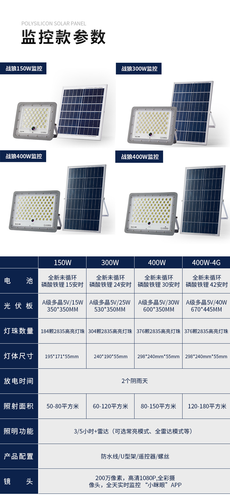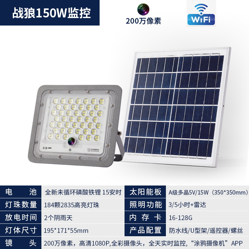 太阳能投光灯摄像头监控一体5G户外投光灯家用庭院灯室外手机远程