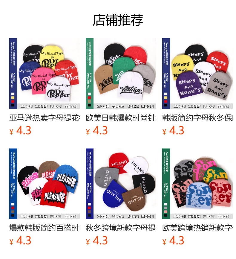 欧美跨境爆款户外个性街头潮流时尚哥特风提花针织帽秋冬保暖防寒
