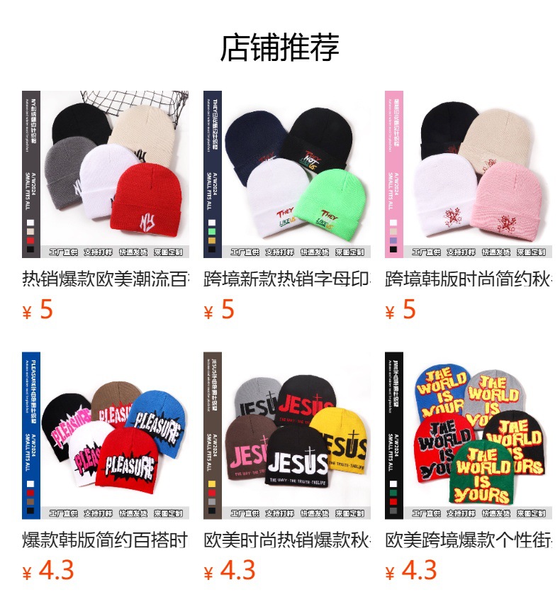 针织帽秋冬爆款休闲百搭欧美街头潮流保暖个性时尚提花男女同款