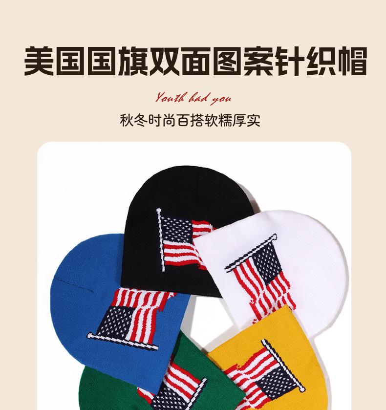 欧美新款热销美国国旗提花针织帽休闲潮流街头个性保暖男女同款