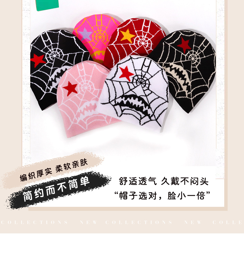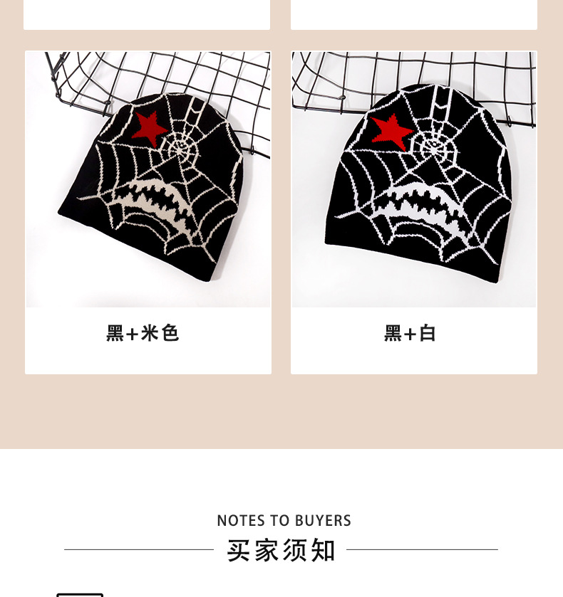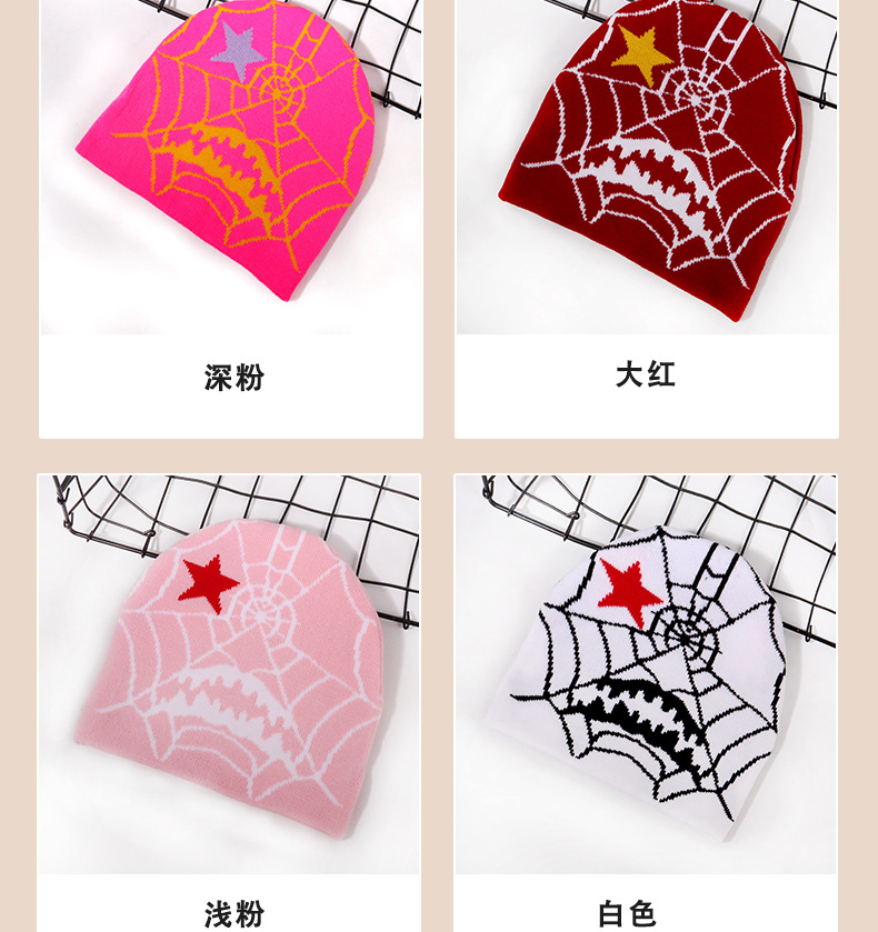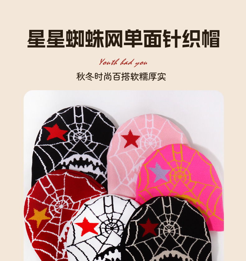 跨境爆款个性哥特风潮流蜘蛛网图案提花针织帽秋冬保暖防寒百搭