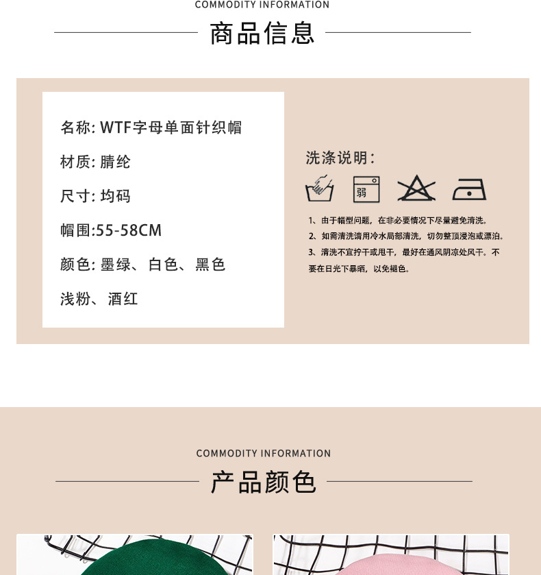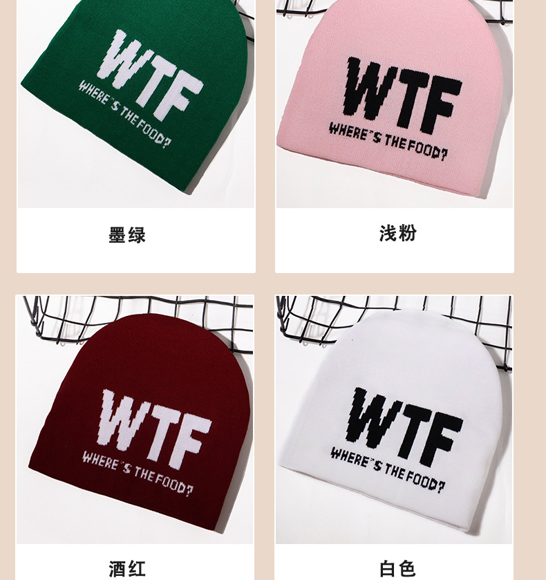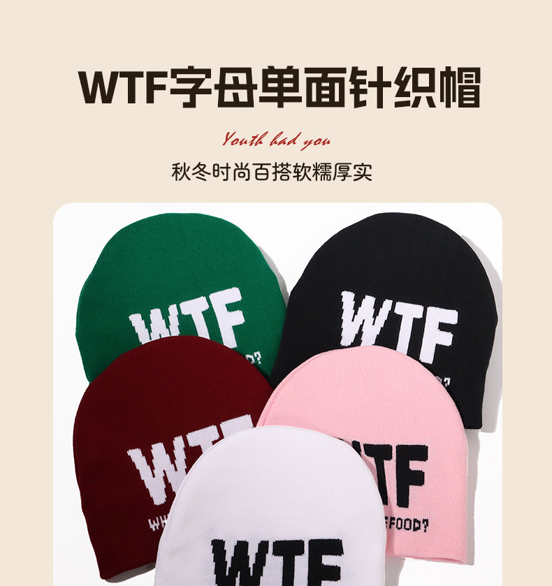 欧美热销韩版简约设计字母WTF针织帽休闲百搭潮流户外街头保暖