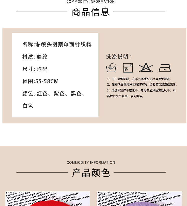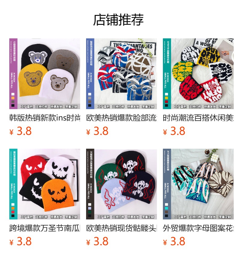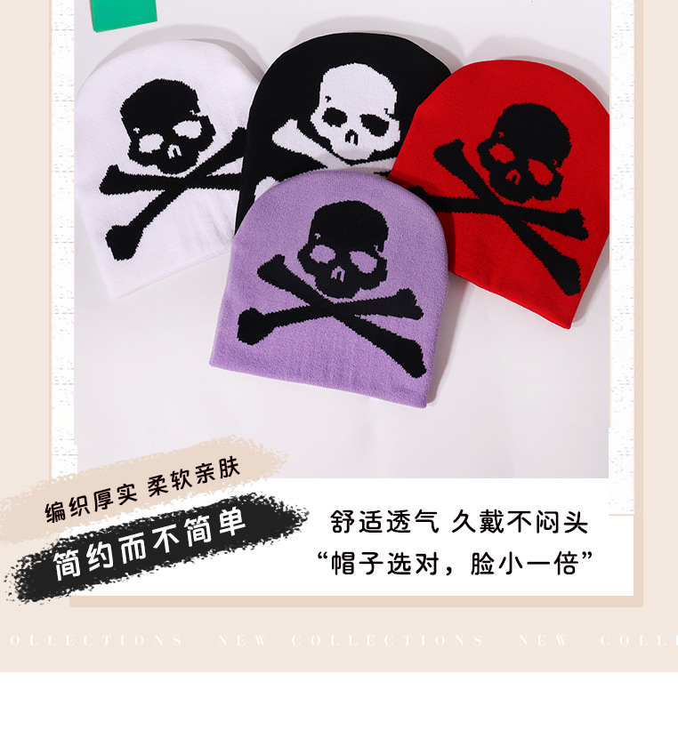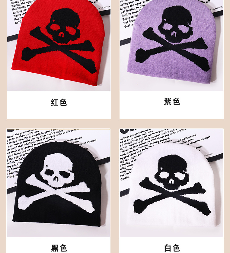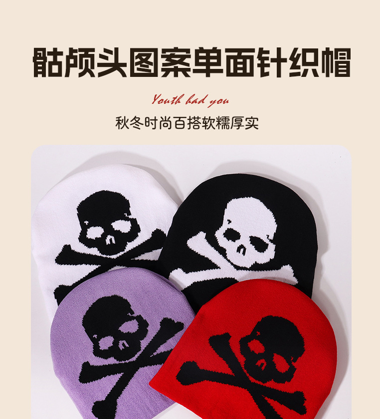 跨境热销骷颅头图案针织帽个性潮流秋冬保暖嘻哈针织帽户外保暖