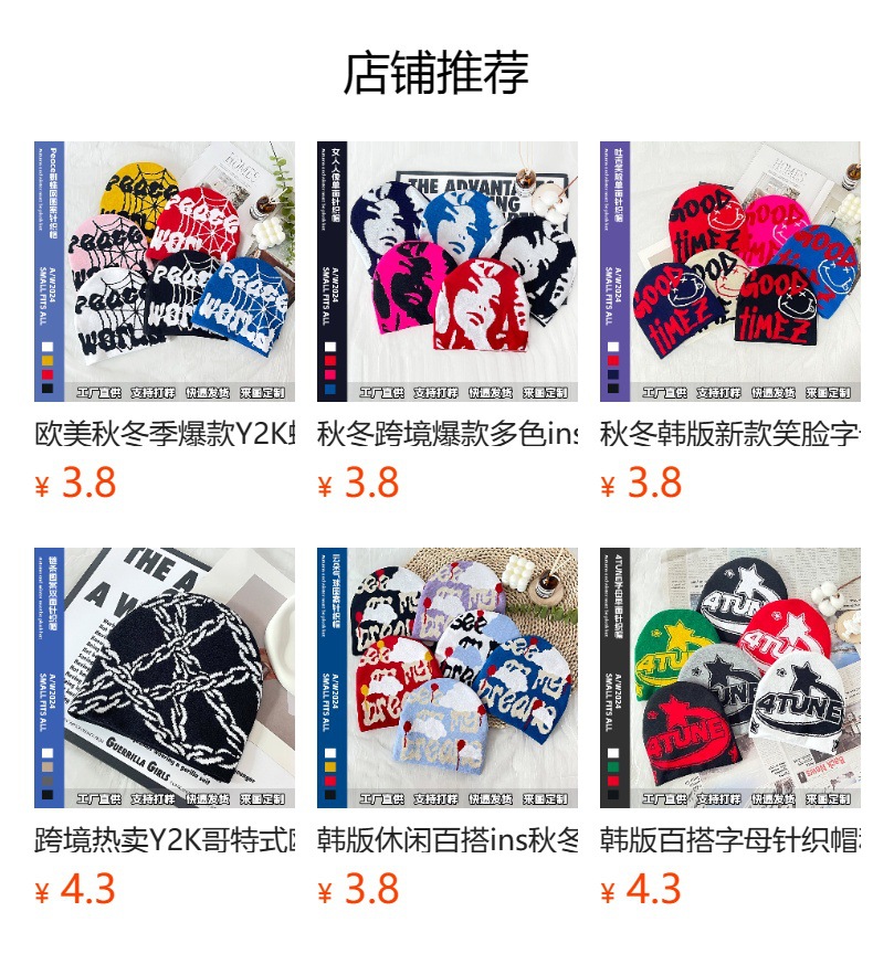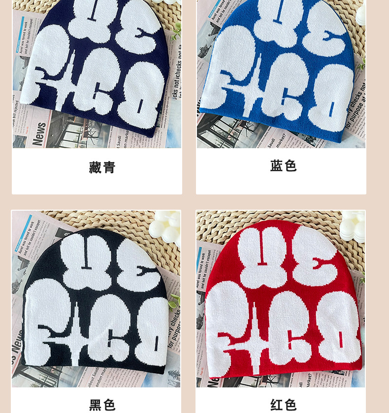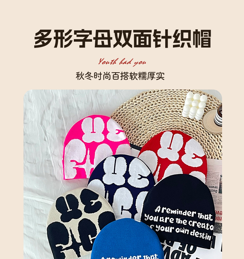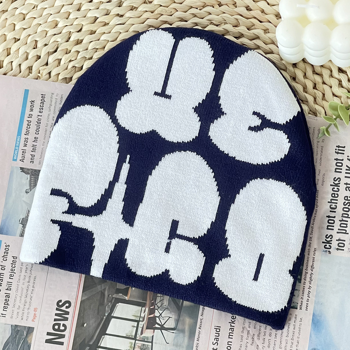 24秋冬爆款韩版休闲通勤时尚保暖字母提花针织帽户外潮流个性百搭