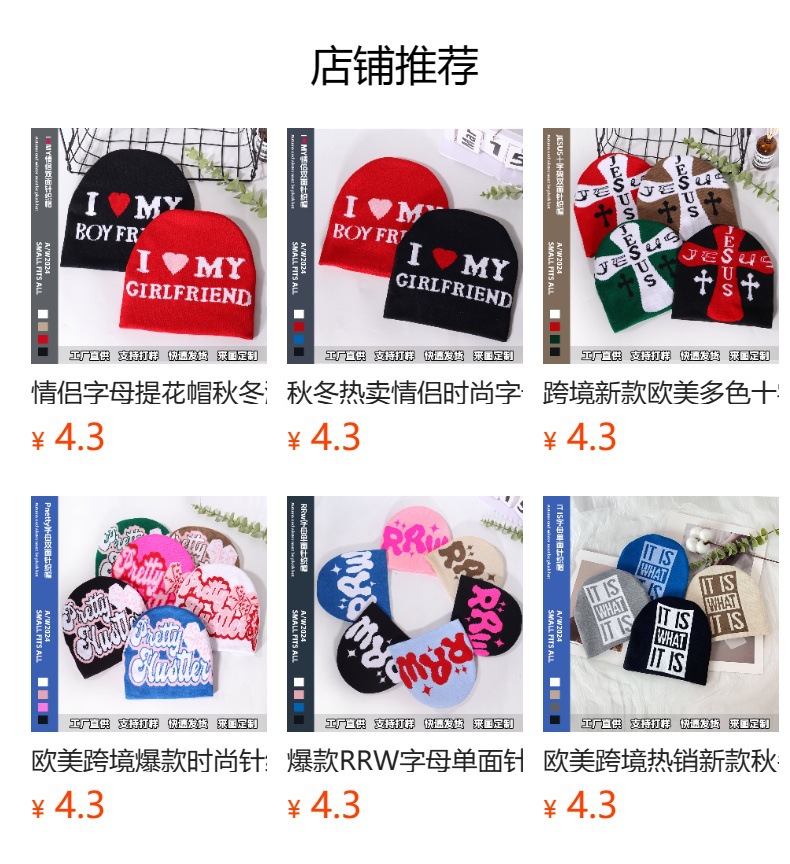 欧美秋冬新款字母提花针织帽冬季潮流百搭保暖户外街头防寒冷帽