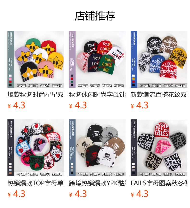 跨境厂家现货秋冬时尚爆款字母Y2K针织帽户外保暖骑行休闲潮流