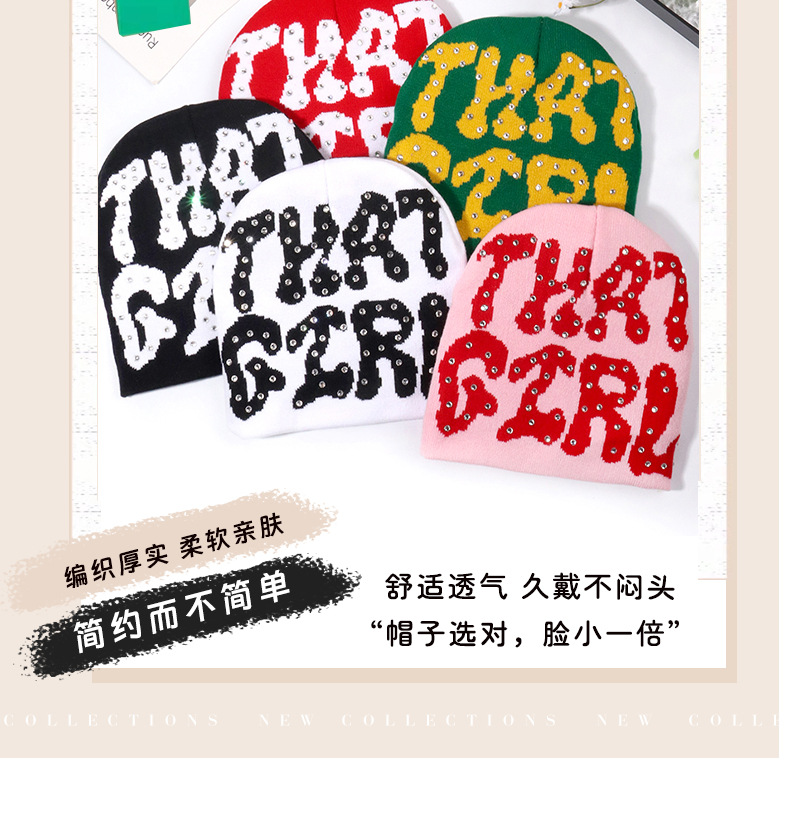秋冬欧美爆款水钻烫钻字母提花针织帽男女时尚休闲百搭保暖现货