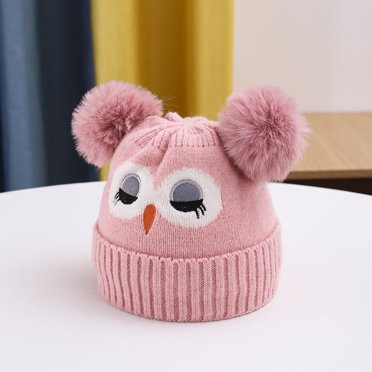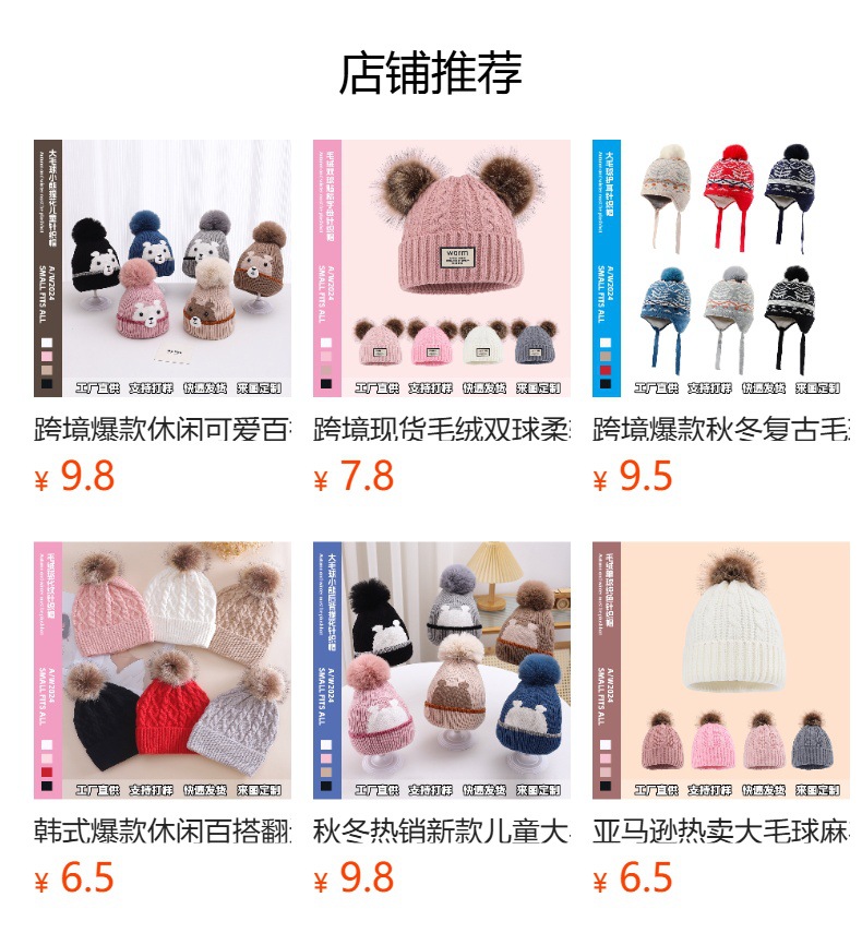 跨境保暖韩系可爱休闲儿童双毛球翻边针织帽防寒保暖柔软亲肤时尚