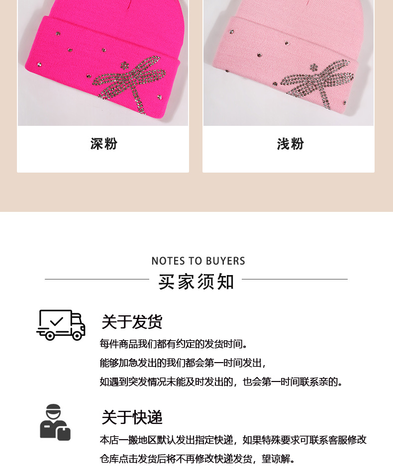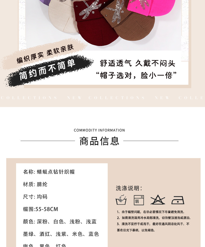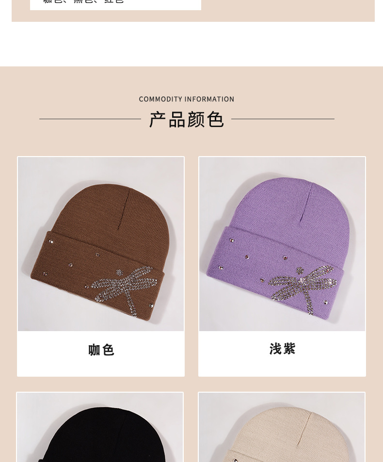 跨境欧美日韩休闲时尚简约蜻蜓图案水钻百搭针织帽秋冬保暖防寒