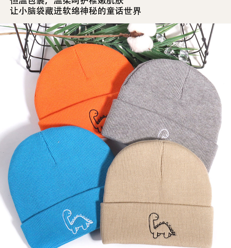 韩版ins儿童帽子秋冬男女恐龙刺绣休闲百搭户外护耳保暖毛线帽
