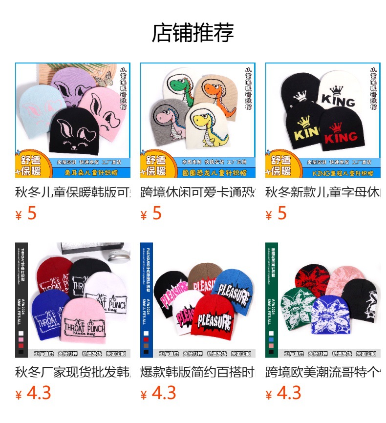 韩版男女儿童休闲百搭恐龙针织帽时尚潮流户外街头保暖个性冷帽