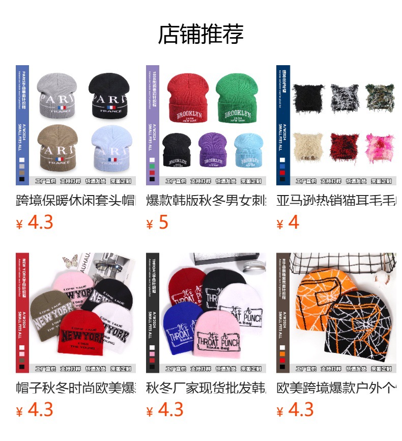 秋冬新款可爱休闲情侣时尚提花针织帽户外骑行露营运动保暖防寒