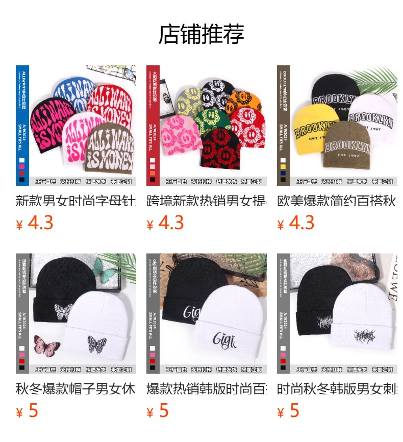 跨境保暖休闲套头帽欧美热销街头潮流百搭字母提花针织帽男女通用