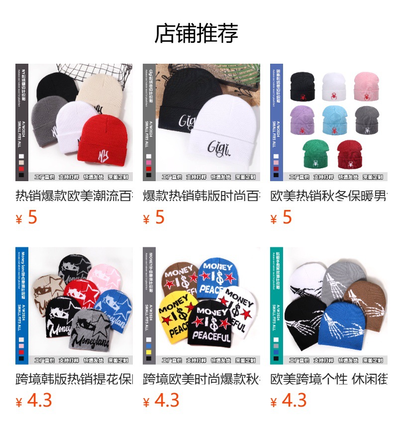 爆款韩版秋冬男女刺绣翻边针织帽户外保暖流行百搭冷帽宽松显脸小