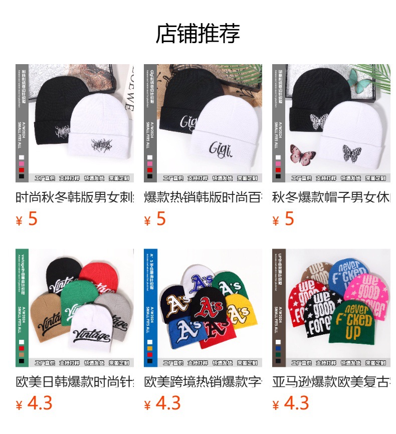 欧美热销秋冬保暖男女刺绣卷边针织帽街头流行Ins个性时尚防寒帽