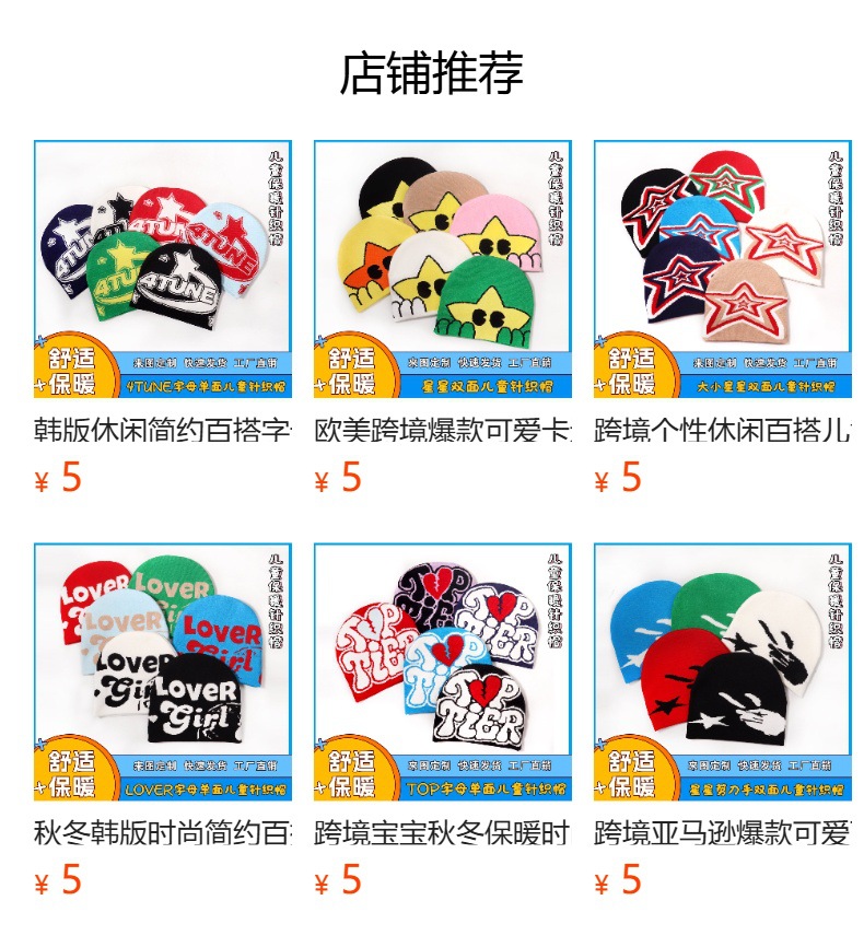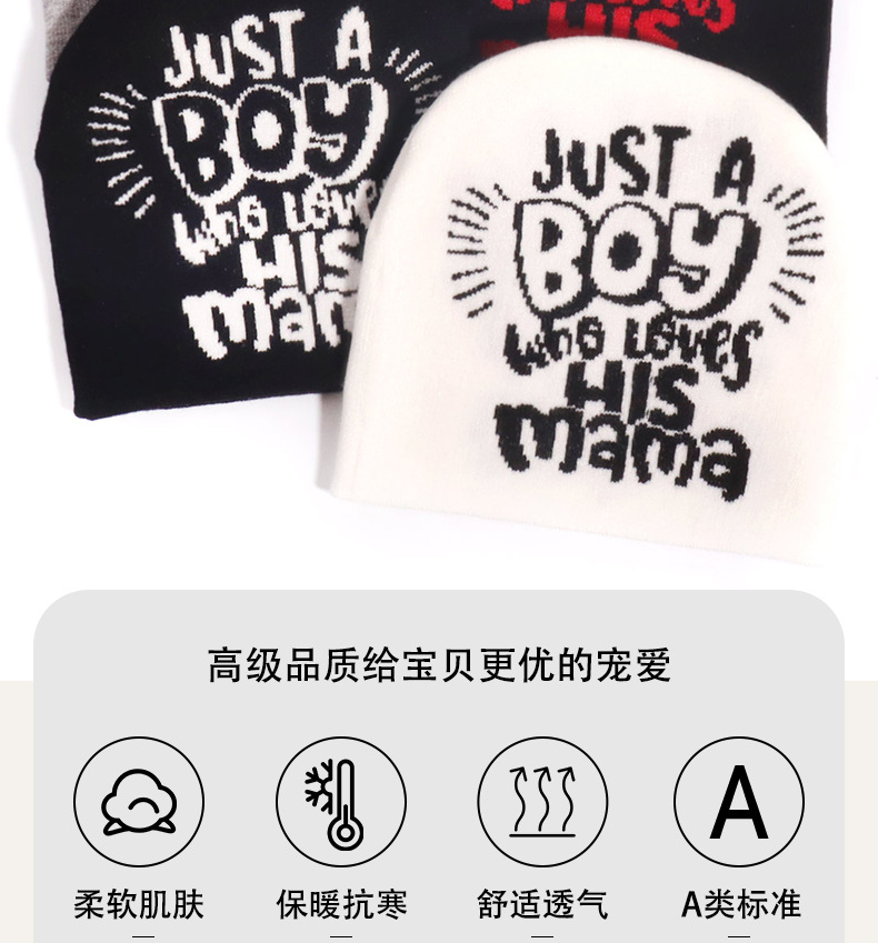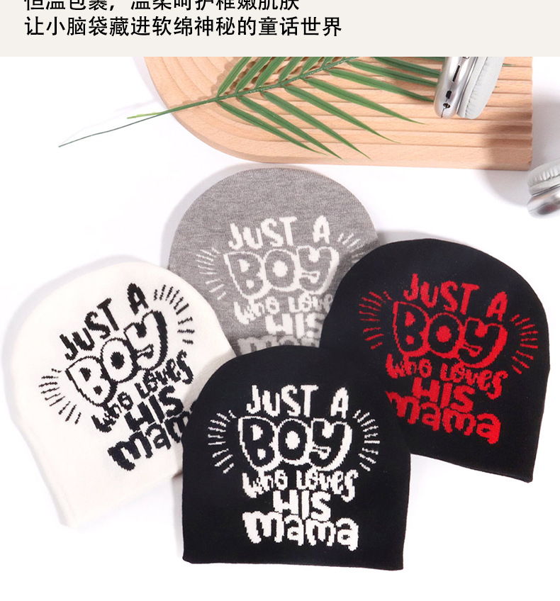 跨境宝宝帽子秋冬男女儿童时尚保暖休闲护耳字母针织帽