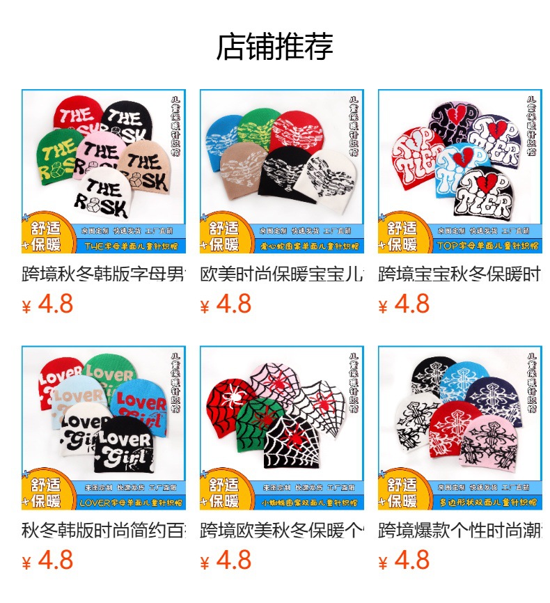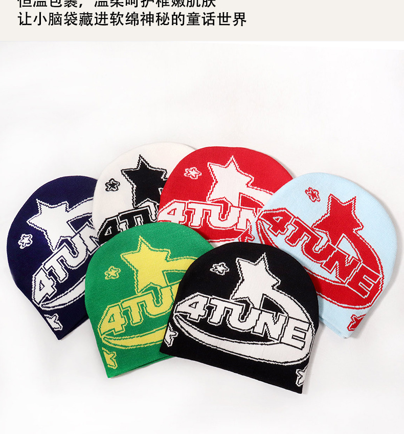 韩版休闲简约百搭字母提花儿童针织帽户外防寒保暖骑行运动男女