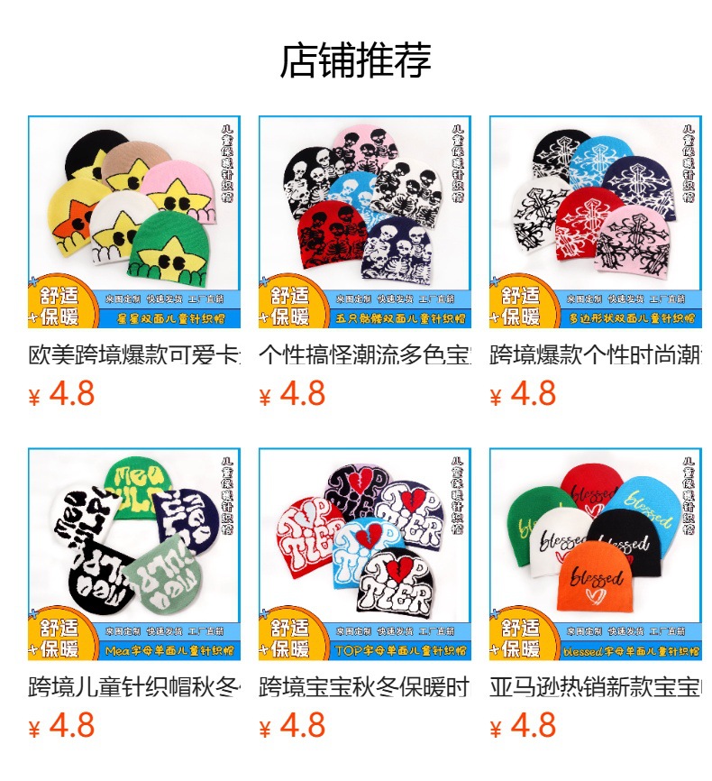 跨境秋冬韩版字母男女儿童针织帽糖果色百搭保暖时尚套头帽