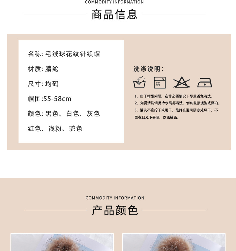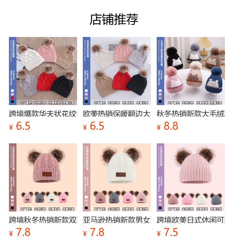 亚马逊热销新款韩式流行纯色大毛球针织帽秋冬时尚保暖护耳百搭