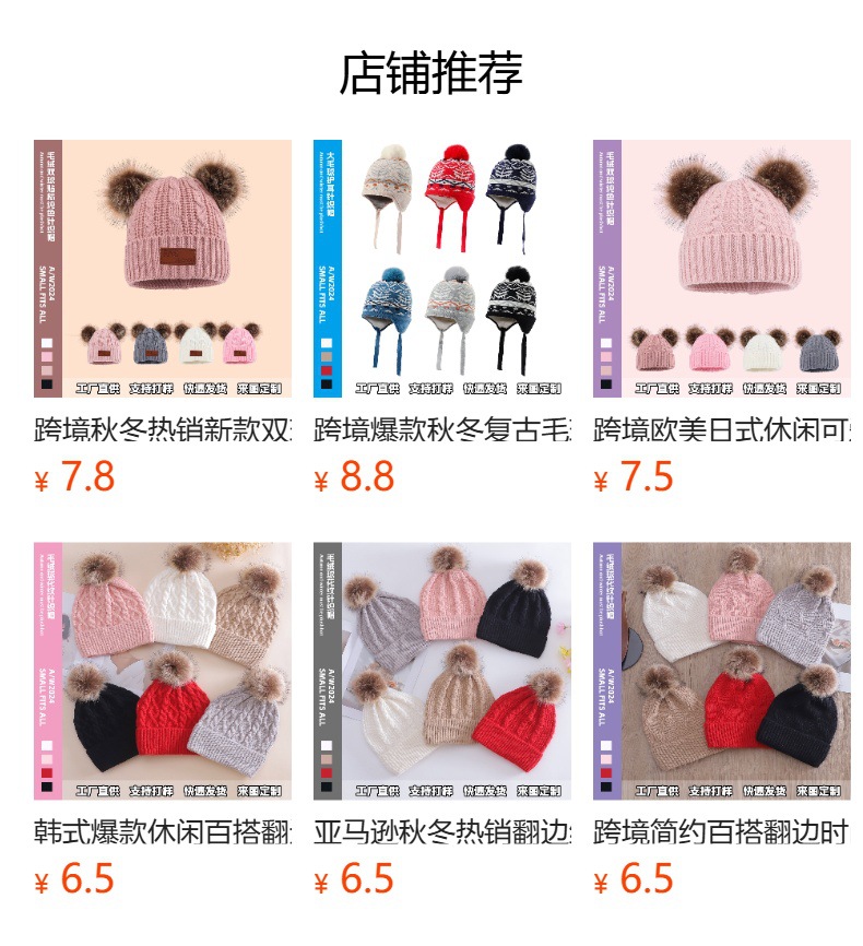 亚马逊热销新款男女百搭双球小熊图案贴标毛线帽时尚保暖护耳