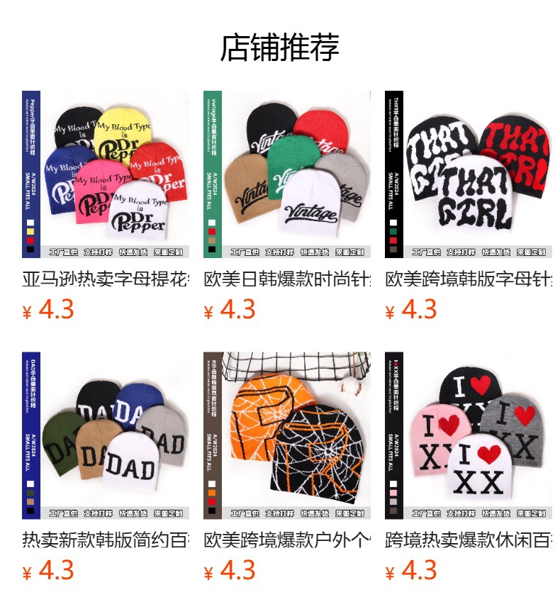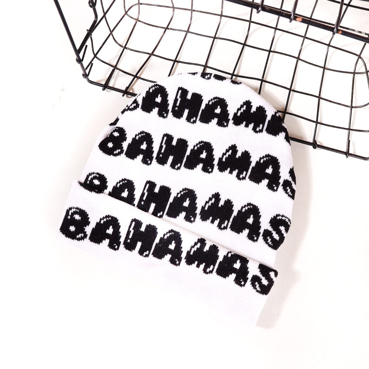 跨境秋冬爆款翻边时尚简约字母提花针织帽户外潮流保暖个性冷帽