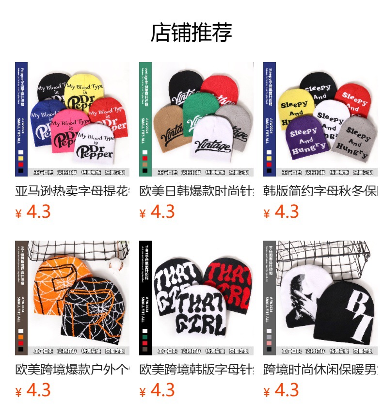 跨境热卖爆款休闲百搭户外街头潮流韩版小众设计提花针织帽防寒