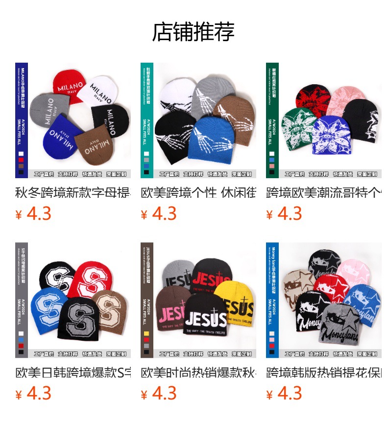 欧美跨境热销新款字母提花针织帽个性休闲户外街头百搭时尚保暖