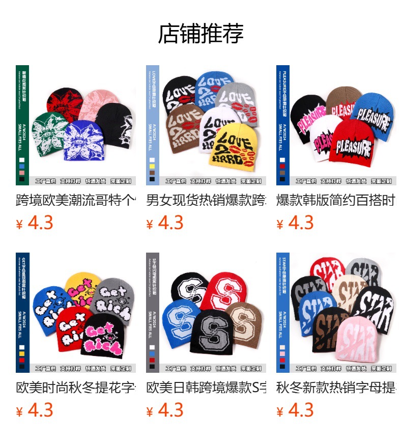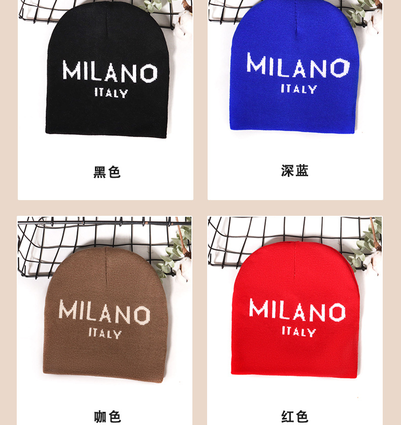 秋冬跨境新款字母提花多色保暖针织帽韩版休闲百搭户外防寒冷帽