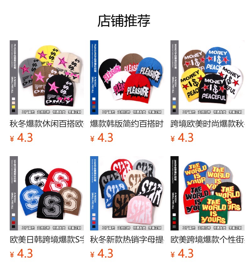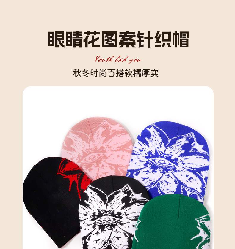 跨境欧美潮流哥特个性时尚秋冬保暖防寒提花针织帽柔软亲肤现货