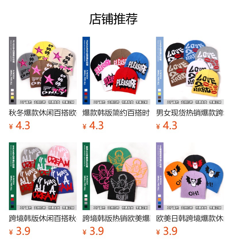 跨境欧美时尚爆款秋冬户外防寒保暖字母提花休闲针织帽男女现货