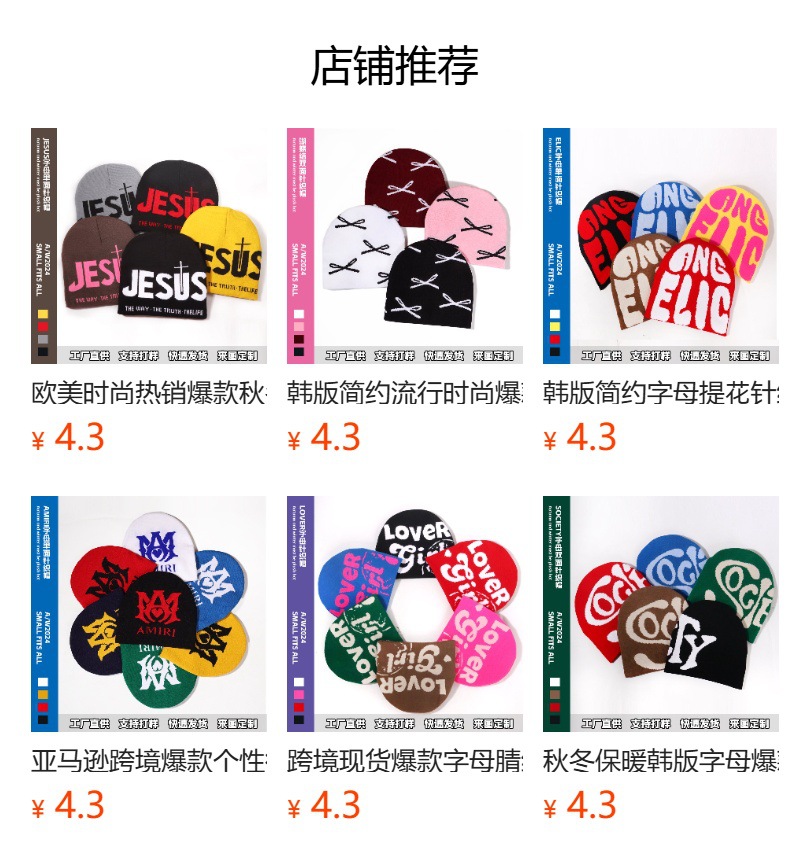 秋冬新款热销字母提花针织帽男女同款时尚防寒保暖街头百搭现货