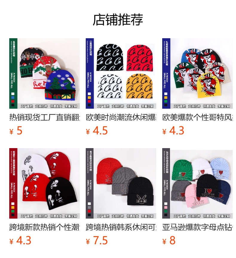 搞怪个性潮流街头跨境欧美热销新款Y2K提花针织帽户外运动保暖