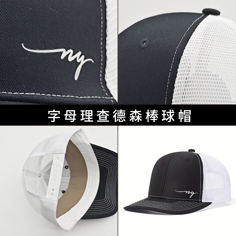新款创意设计字母平檐棒球帽微弯理查德森卡车司机帽运动透气网帽