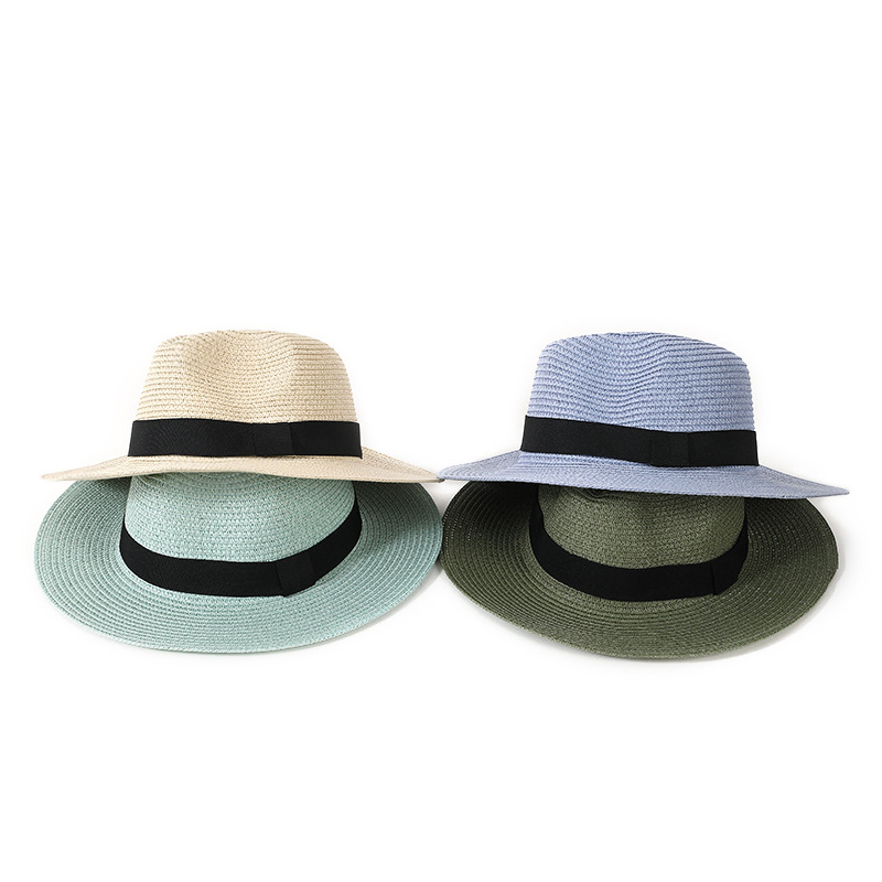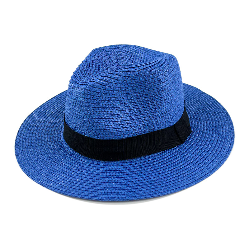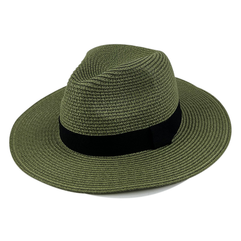 夏季巴拿马三折带大檐草帽跨境英伦风爵士礼帽户外防晒遮阳沙滩帽