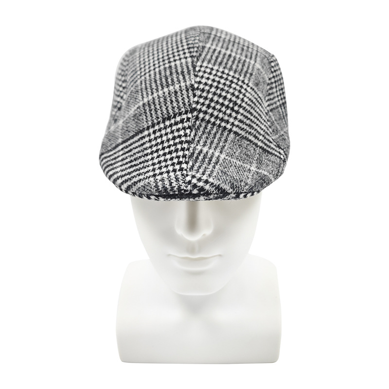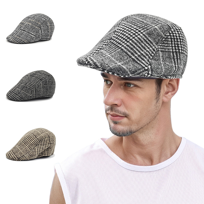 秋冬季保暖中老年复古前进帽 加厚老人鸭舌帽爷爷条纹护耳贝雷帽