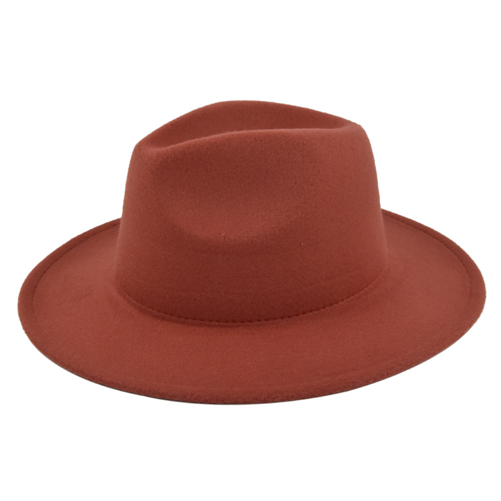 欧美外贸秋冬新款毛呢礼帽复古男女绅士爵士平檐毛毡直边大檐帽子